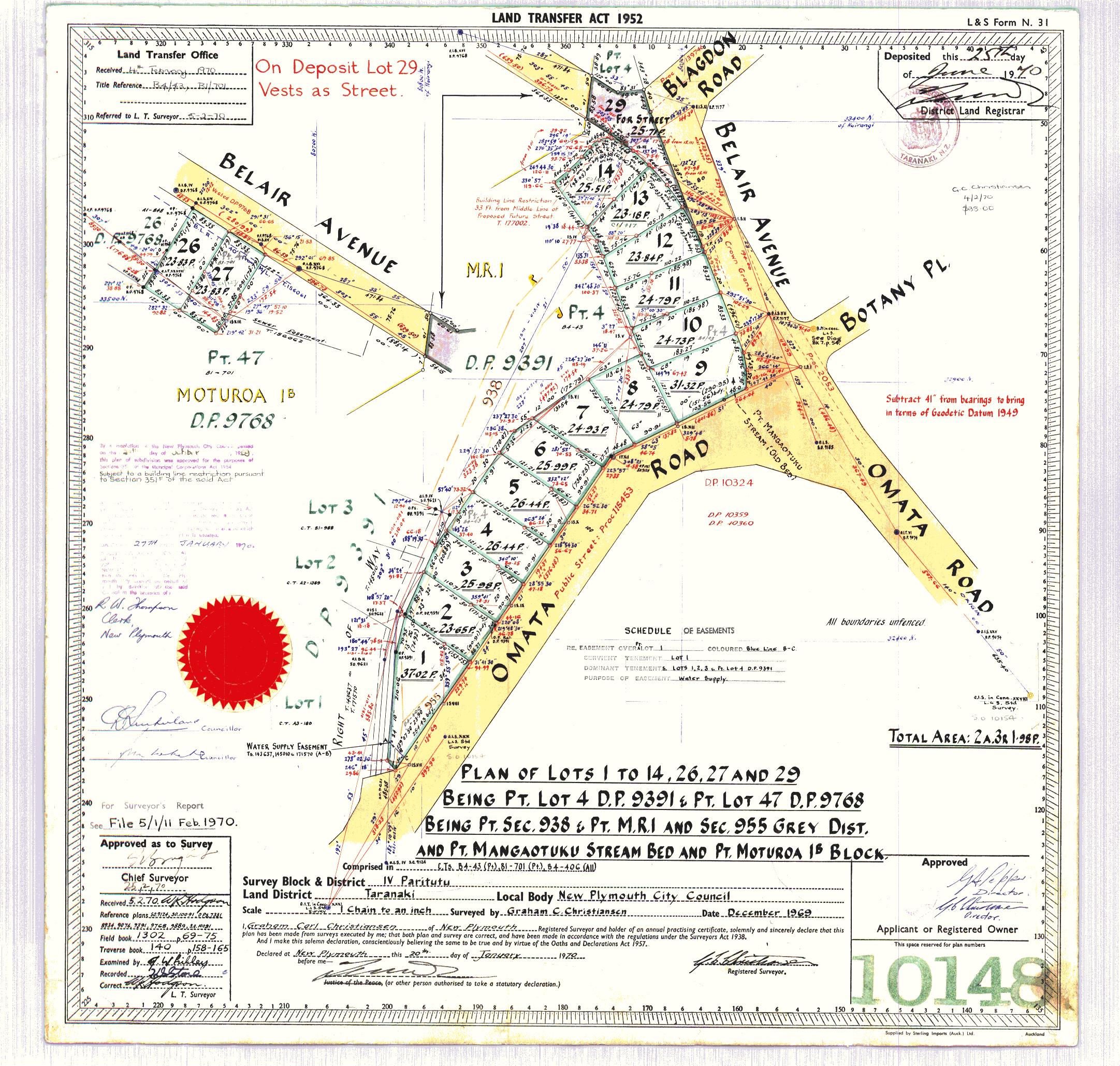 Taranaki DP10148 Sheet 1 (1969), ICS Pre 300,000 Cadastral Plan Index (Imaged by LINZ)