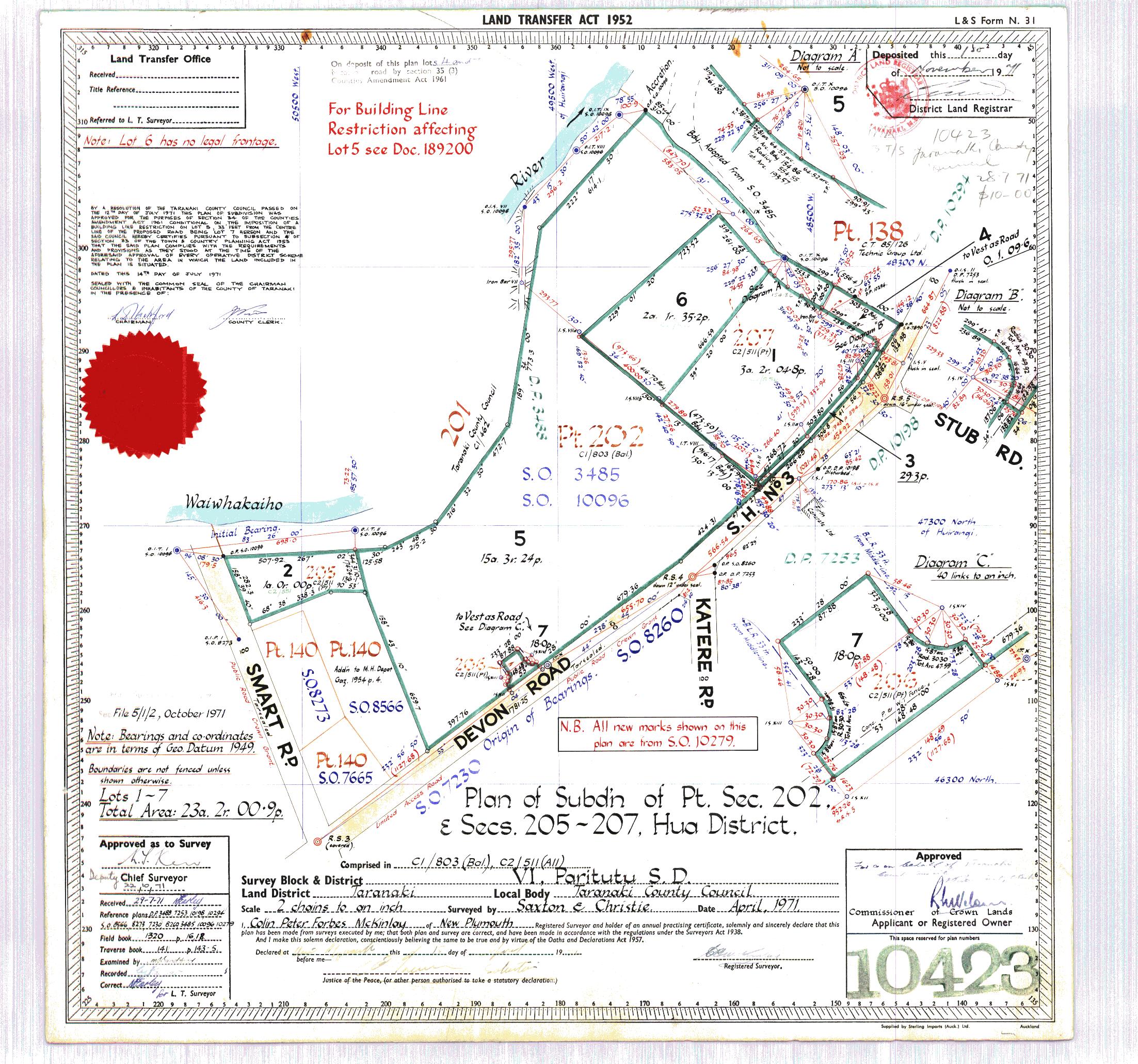DP10423 Cadastral Plan Index (Imaged by LINZ)